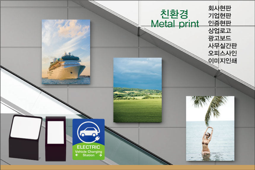 UVART의 UV 인쇄 알루미늄 패널은 UV잉크로 직접 인쇄할 수 있으며, 인쇄된 이미지는 매우 우수합니다. 제품 사진, 풍경 사진, 인물 사진 등 매장에 어울리는 이미지를 인쇄 합니다. 액자가 필요 없이 패널 자체가 액자 역할이 되는 친 환경입니다.
